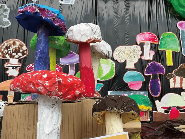 新聞紙で簡単!大きなキノコづくり