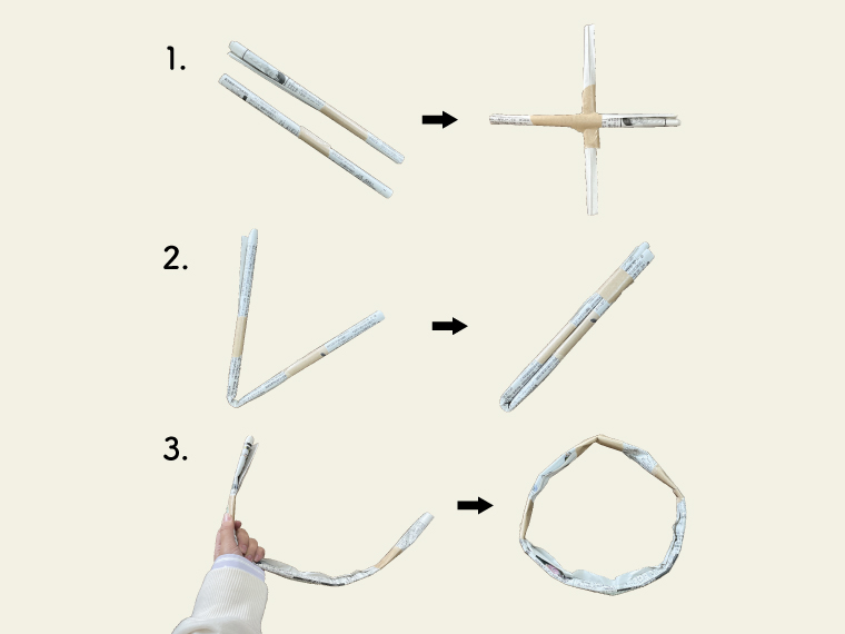 3.輪になるよう曲げて、端をテープでとめる
