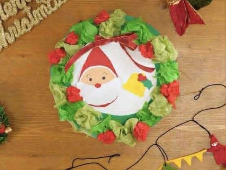 紙皿に飾りをつけて、かわいいクリスマスリースを作ろう!