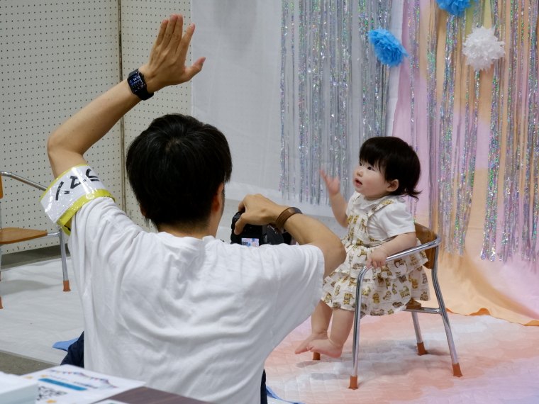 カメラマンがお子さまの写真をお撮りします。笑顔でにっこりポーズしてね!