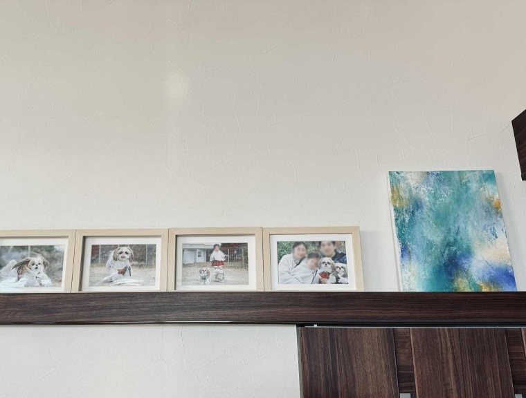 作家のArt boxさんにわが家の大切な家族を描いていただいた私の宝物。一人ひとりの特徴や、やさしい表情まで丁寧に表現されている所がお気に入り!大好きなものを集めた棚に飾ってほっこり癒やされています。(maiko)