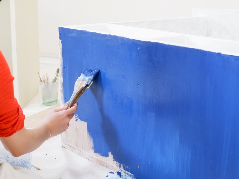 床の裏は目の覚めるような青色。見えないところもきれいに塗っています。