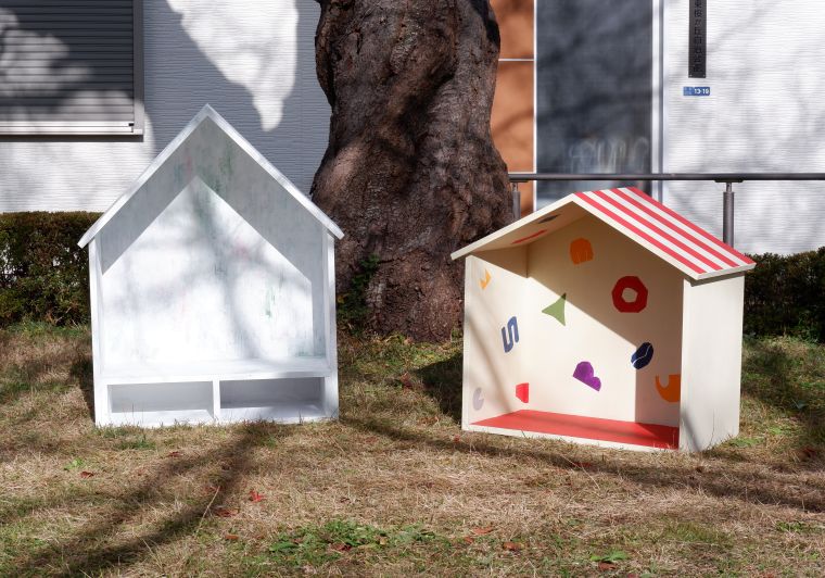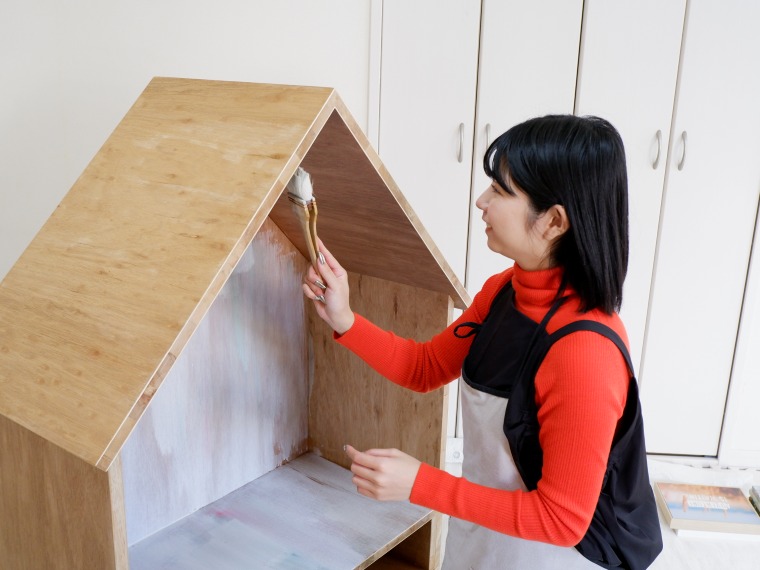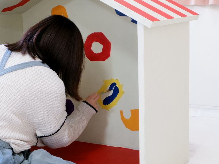前回、大工さんとつくったタイニーハウスに、色をつけて完成させていきます。